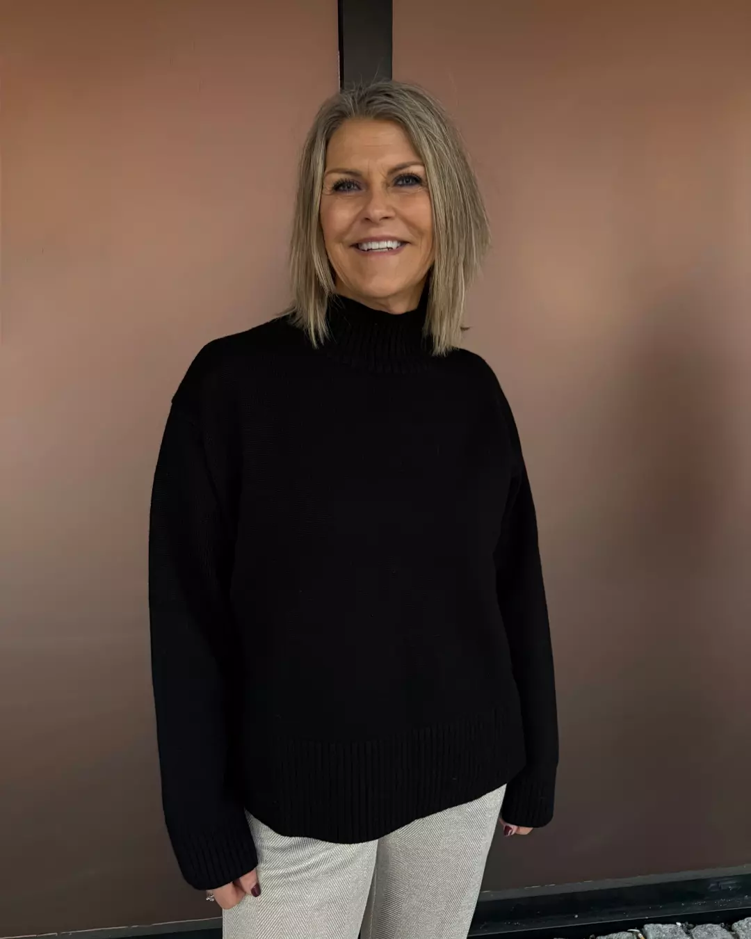 Den er kortere foran enn bak, en skikkelig fin hverdagsgenser, litt oversize men ta din vanlige størrelse
