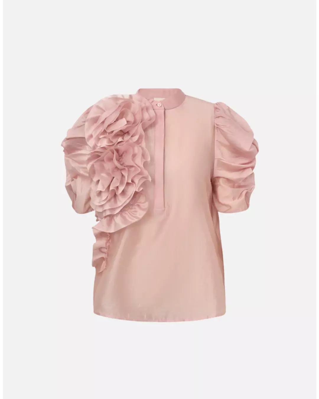 AnnsofiGO-blusen fra Gossia er en elegant og feminin bluse med et unikt, skulpturelt uttrykk. Den asymmetriske volangdetaljen i front gir et eksklusivt preg, mens de lett puffede ermene tilfører mykhet og balanse. En vakker bluse som løfter ethvert antrekk og passer like godt til hverdags som til fest.