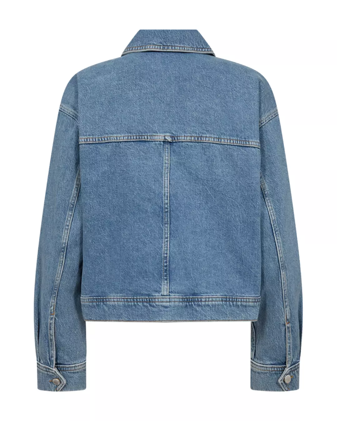 CMANOUK-JACKET fra Copenhagen Muse er en jakke i premium denim med et avslappet og moderne uttrykk. Den har knappelukking i front, store brystlommer, klassisk krage og lange ermer med mansjetter. Den vide passformen gir et komfortabelt og tidløst silhuettpreg, perfekt til lag-på-lag eller som et lett ytterplagg innendørs.