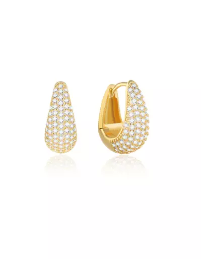 Superlekre bananahoop ørepynt, dekket med små krystaller.