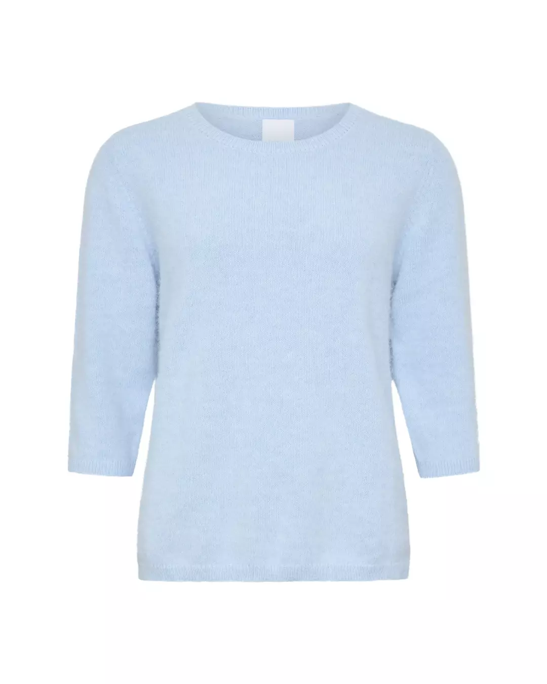 En myk og feminin genser fra Ane Mone med et delikat, pusete uttrykk som gir både komfort og eleganse. Den har en klassisk rund hals, ribbestrikkede kanter og ermer i en lett trekvartlengde som gjør den enkel å style gjennom flere sesonger. Kvaliteten er myk mot huden og faller pent, noe som gir et avslappet, men fortsatt raffinert preg. Et allsidig plagg som fungerer like godt til hverdags som til et mer pyntet antrekk.
