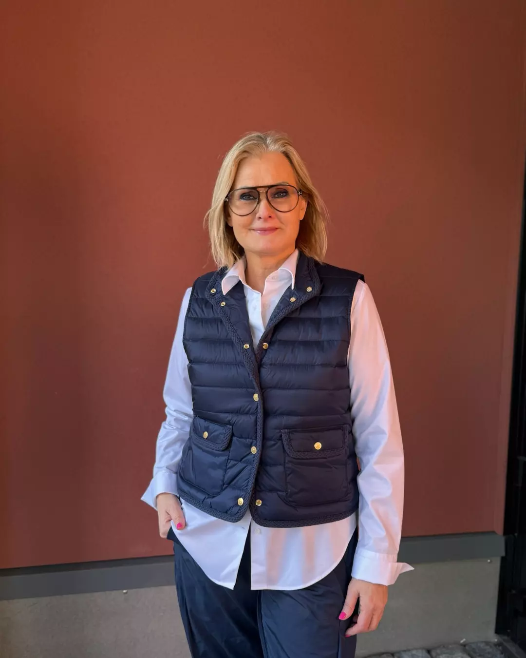 Feminine LW Doen vest fra Tommy Hilfiger er en lett og feminin vest med quiltet struktur og en gjennomført, tidløs silhuett. Den har en elegant knappelukking og praktiske lommer som gir både funksjon og et polert uttrykk. Den lette konstruksjonen gjør den enkel å style gjennom sesongene, og den rene finishen gir et sofistikert preg til alt fra hverdagsantrekk til mer oppgraderte kombinasjoner.