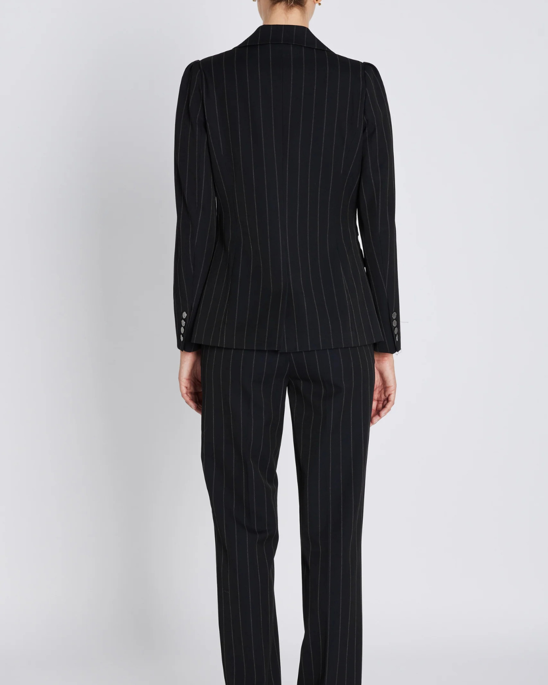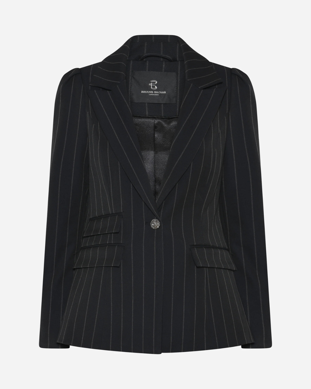 HydrangeaBBNora Blazer fra Sweetpie er en skarpt skreddersydd blazer med rett passform og markerte skuldre som gir et moderne og kraftfullt uttrykk. Klassiske slag og knappelukking understreker det tidløse designet, mens den sorte pinstripe-strukturen tilfører en sofistikert detalj.