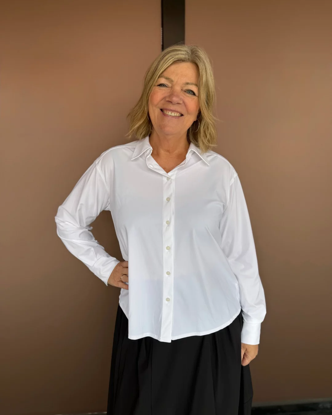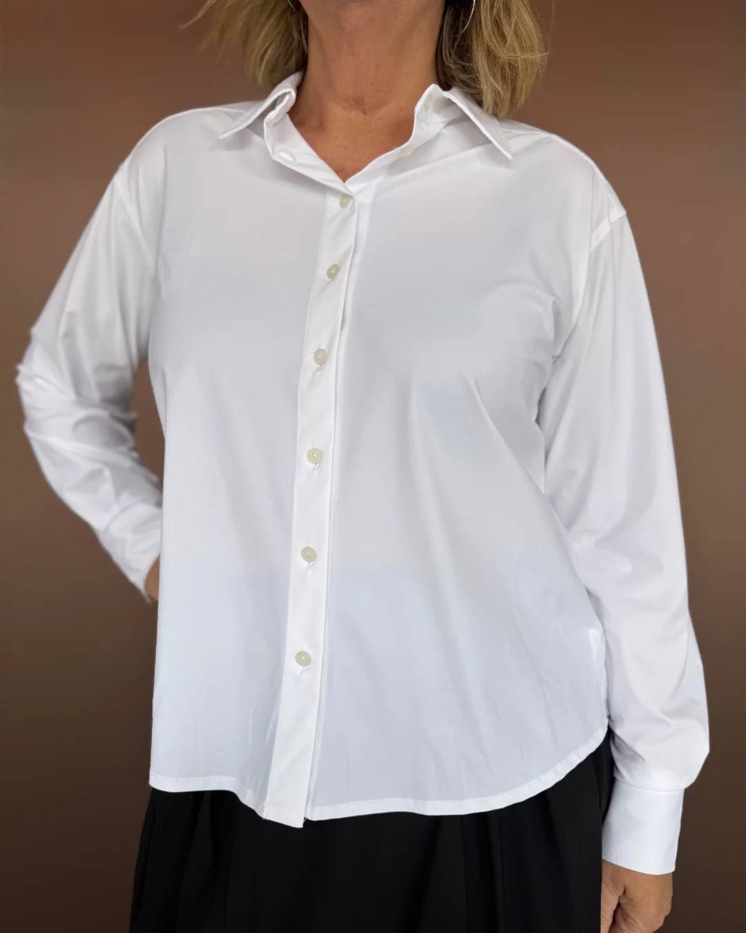 Ivona Blouse Technical Jersey – White fra Jane Lushka er en moderne og komfortabel skjorte med løs passform og elegante detaljer. Den har klassisk krage, skjult knappelukking og puffede ermer med knappede mansjetter. Skjorten er laget i et teknisk jerseymateriale med høy stretch, som gir god bevegelighet og en glatt, strukturert finish. Designet balanserer funksjon og stil, og passer både til hverdags og mer formelle anledninger.