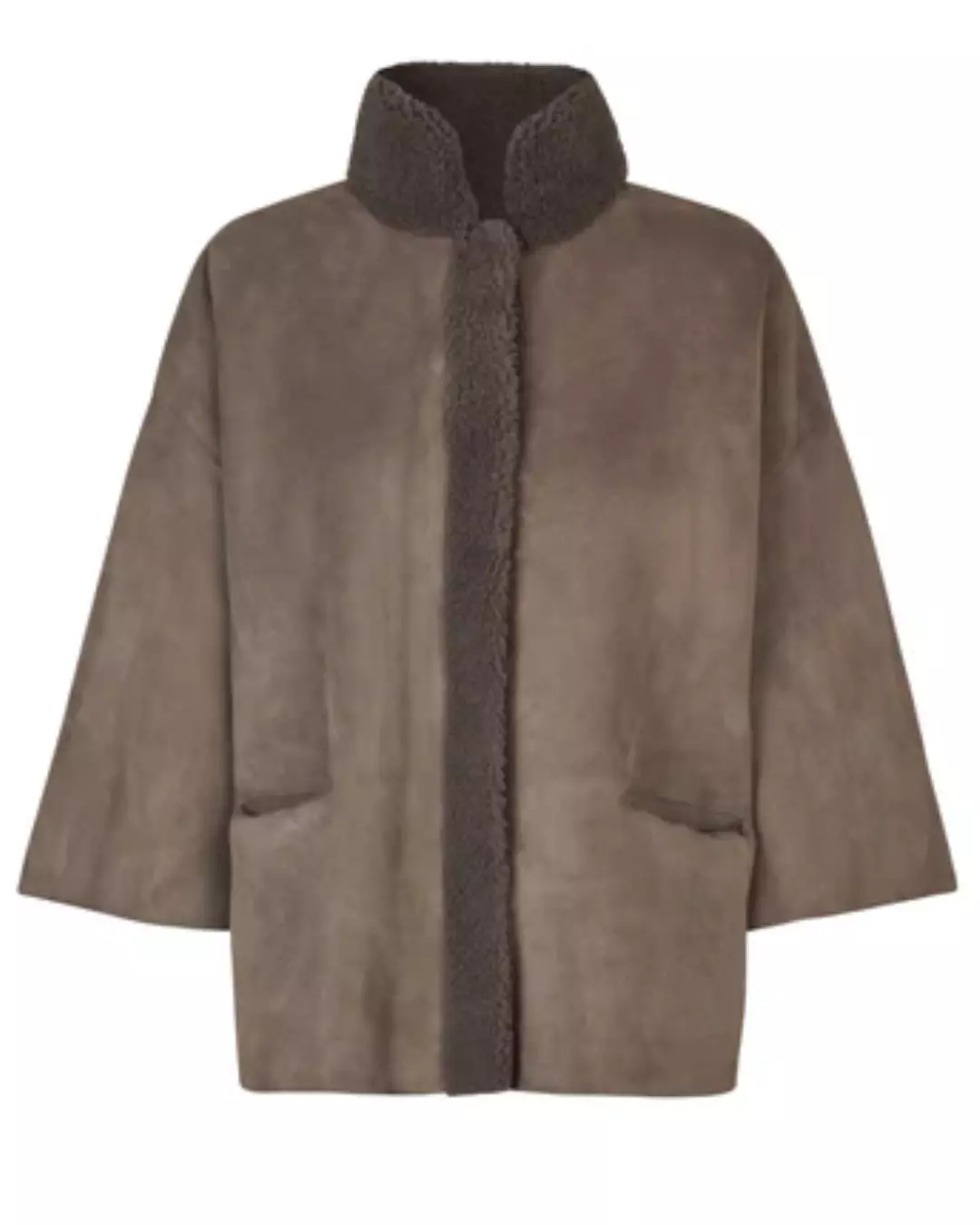 Kate er Benedikte Utzons mest populære lammeskinnsjakke – en tidløs, vendbar klassiker med både myk lammeskinnsside og elegant ruskinnsside. Den korte, firkantede silhuetten, den lille kragen og de diskrete trykknappene gir et moderne og raffinert uttrykk. De 3/4-lange ermene tilfører et feminint preg og gjør jakken enkel å style med både hansker og strikk. Lengden til midt på hoften gjør den allsidig og flatterende, uansett anledning.