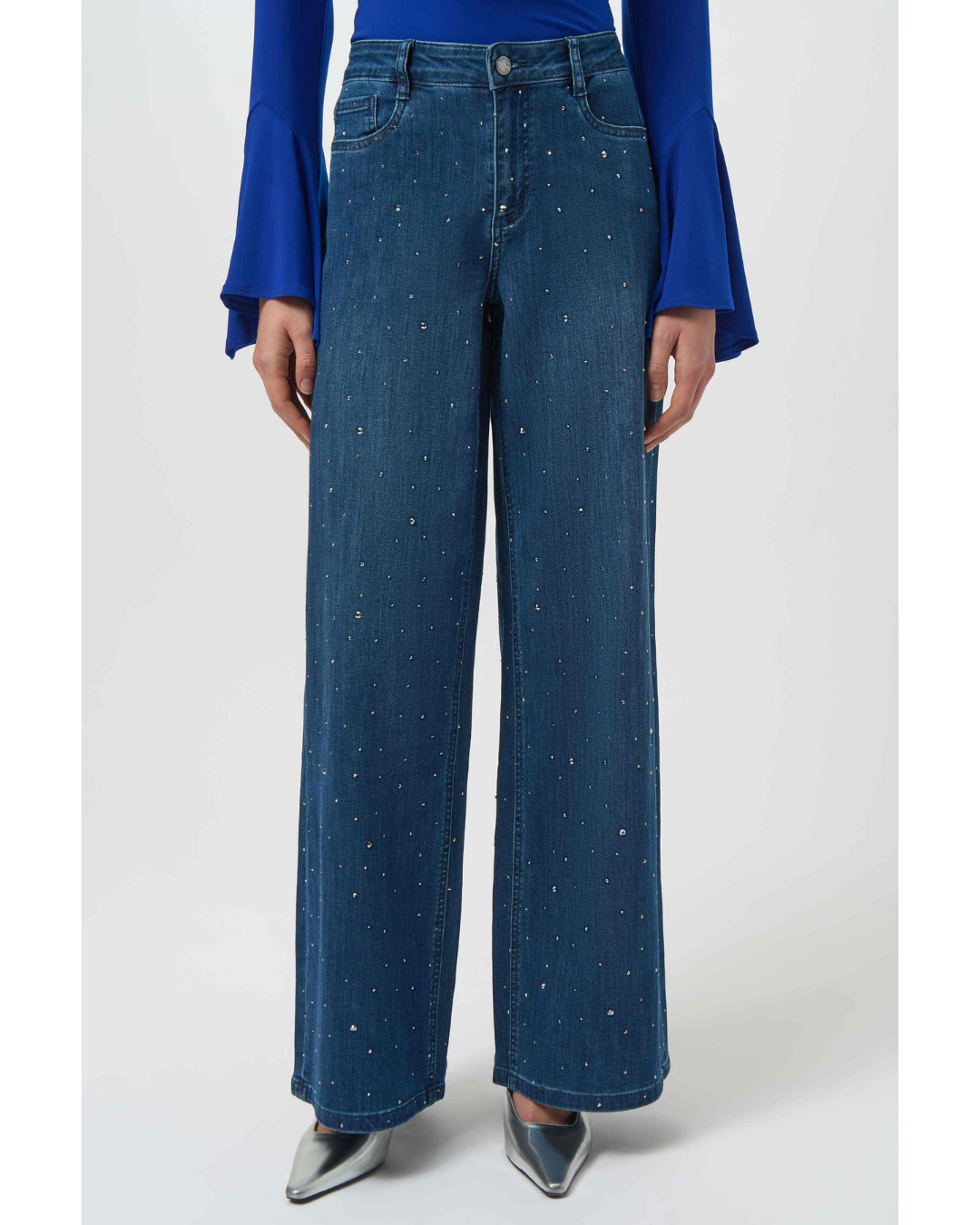 Laget i ultramykt Featherweave®-denim, kombinerer denne klassiske vide jeansen komfort med en flatterende passform. Diskré strassteiner over hele stoffet tilfører et hint av glans, noe som gjør den til et klart ja for moteelskere.