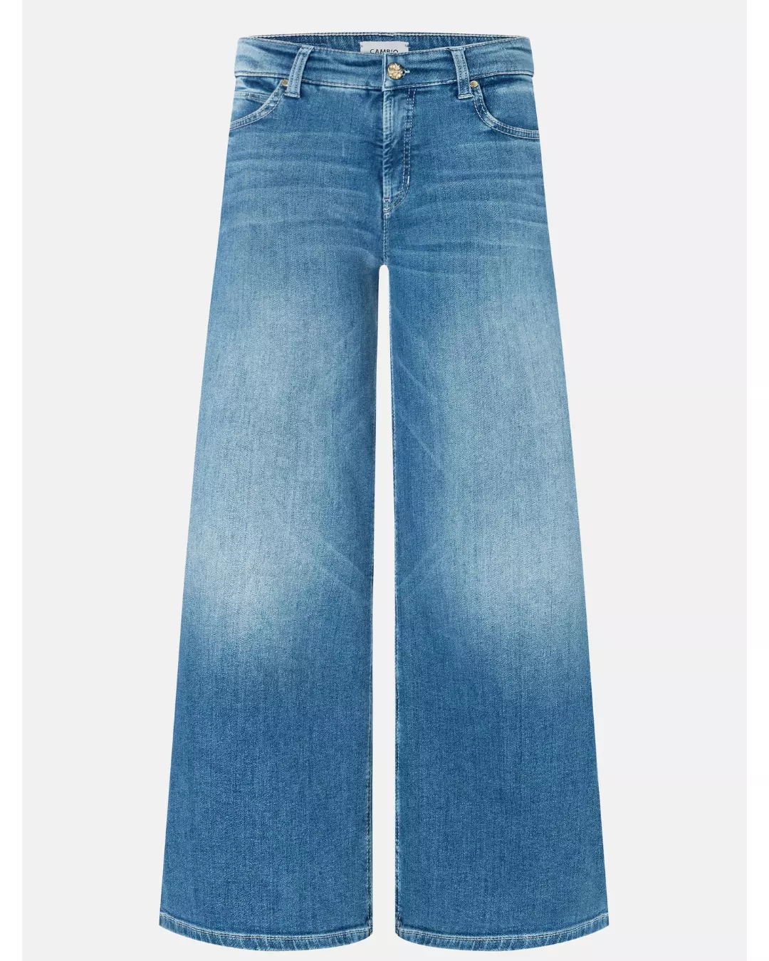 PALAZZO CROPPED er en vid jeans i cropped lengde med høy midje og moderne vask som gir en feminin og flytende silhuett. Denne modellen fra CAMBIO er laget i en myk og behagelig superstretch-denim med innhold av lyocell for ekstra komfort. Den passer like godt til avslappede antrekk som til mer elegante stiler.