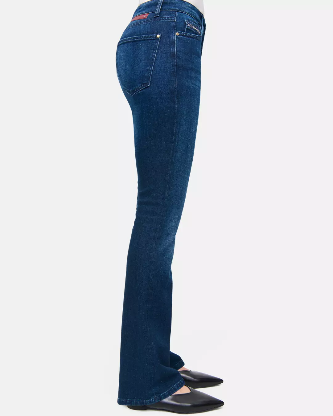 Paris Flared w/smuckdet – Mid Ink fra Cambio er en lang flared jeans med feminin silhuett og moderne retrofølelse. Den kommer i en dyp blå vask og har klassiske 5-lommers detaljer. Et delikat kjededekor ved frontlommen gir et subtilt, men effektfullt uttrykk. Laget i komfortabel denim med stretch for god bevegelighet og passform.