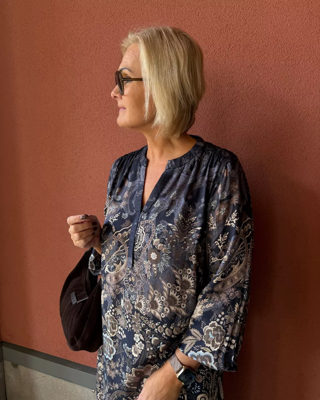 Det unike mønsteret i dype, mørke toner gir et eksklusivt preg, perfekt for både hverdag og fest. En tidløs kjole du kan bruke sesong etter sesong – komfortabel, elegant og alltid like aktuell.