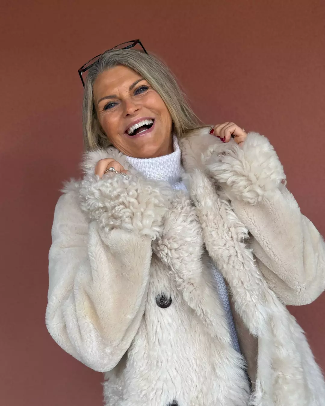 Vendbar Lammeskinnskåpe – Beige Offwhite